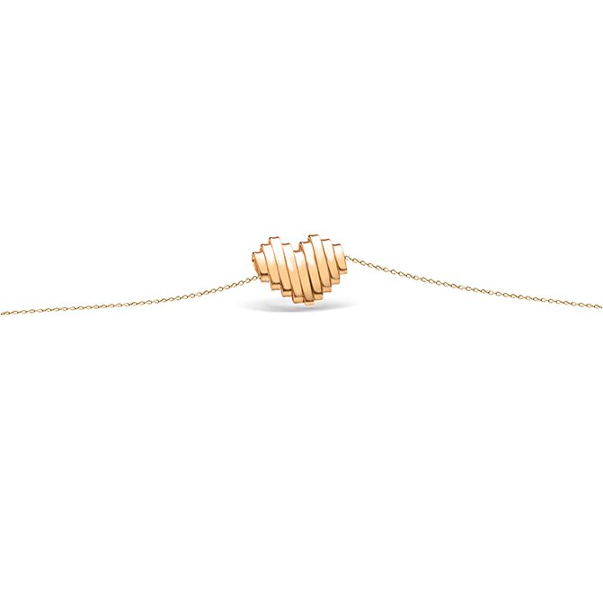 دستبند طلا قلب فرکانس ترکیبی از هنر مدرن و احساسات ناب است. این دستبند از طلای ۱۸ عیار ساخته شده و قلبی با طراحی فرکتالی در مرکز آن قرار دارد که جلوه‌ای متفاوت و چشم‌گیر ایجاد می‌کند. ساختار پله‌ای و هندسی قلب، الهامی از ریاضیات و هنر معاصر است و به آن ظاهری خاص و منحصربه‌فرد بخشیده است.