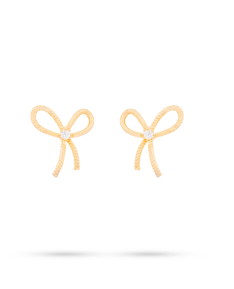 The design of these earrings, inspired by the bow tie, symbolizes beauty, tenderness, and feminine charm. The delicate texture of the gold worked into the body of the bow tie creates a special and different appearance, and the presence of the central gem adds to its shine and charm. The design style of the earrings is such that it conveys a sense of tenderness and has a luxurious and modern appearance.