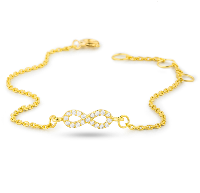 The Kia Gallery’s ultra-fine gold chain bracelet is a delicate blend of beauty, meaning, and authenticity. Made of 18-karat gold, this bracelet features a unique design of the “∞” or infinity symbol, known as a symbol of eternal love, lasting commitment, and enduring friendship. The presence of tiny, sparkling gems on this symbol gives it a special, eye-catching look, making the bracelet shine on the wrist in a delicate and luxurious way.
